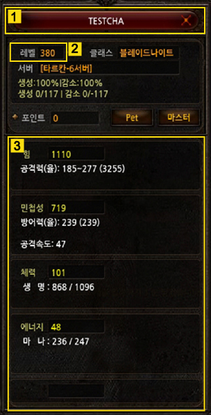 - La informacion del personaje se mostrara en la ventana de la parte superior presentando la suma del nivel general y el Maestro