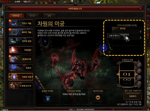 - El numero de entradas diarias del Maze of Dimensional es limitado. Conteo de entradas diarias del Maze of Dimensional